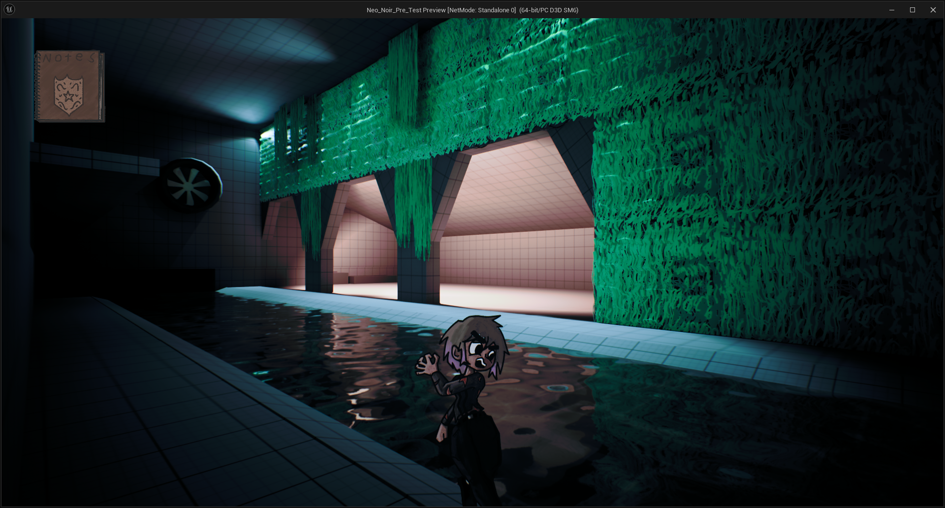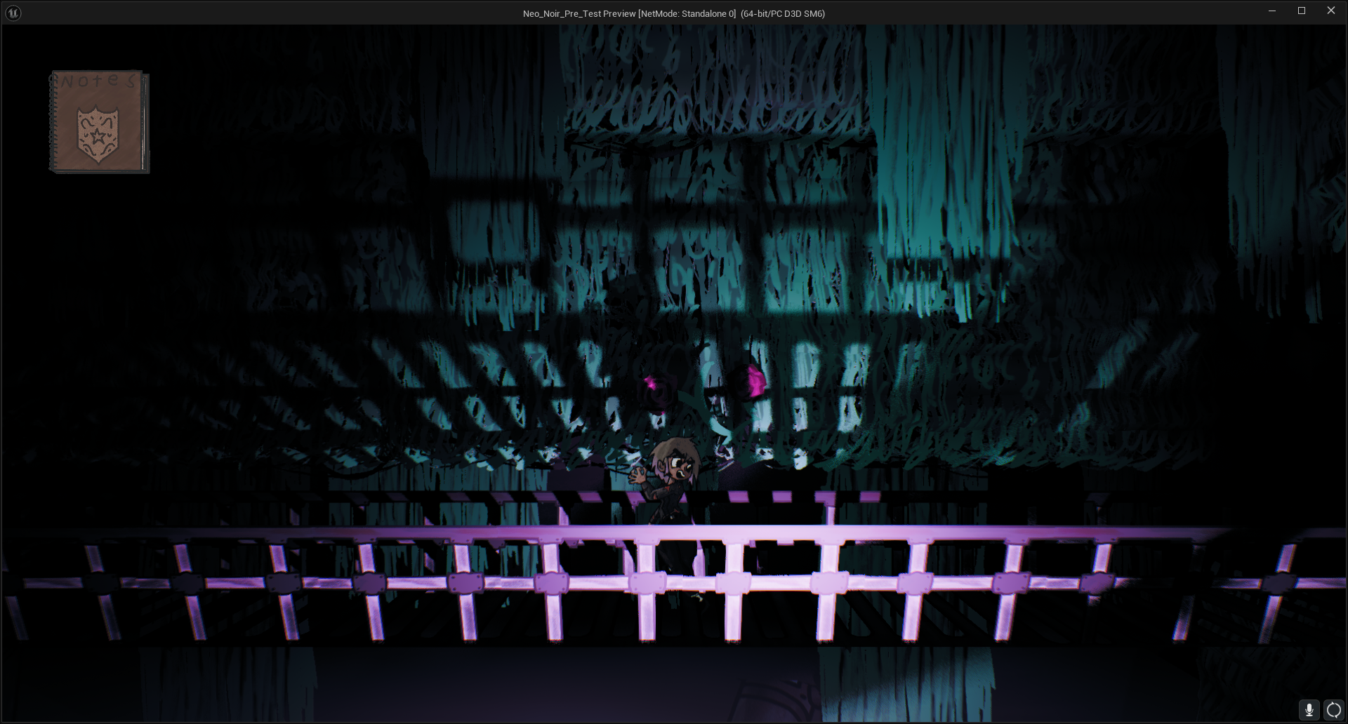 While I'm Not allowed to show much I can show one small test area that was used in the proof of concept for a 3d adventure game with 2d characters.